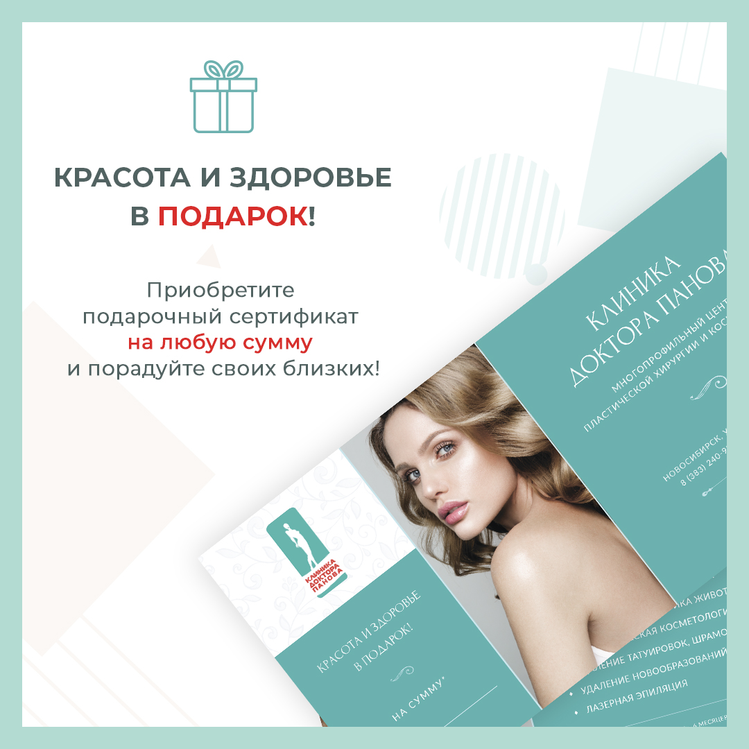 В Клинике «Доктора Панова» вы можете приобрести подарочный сертификат для близких на любую сумму на следующие услуги: